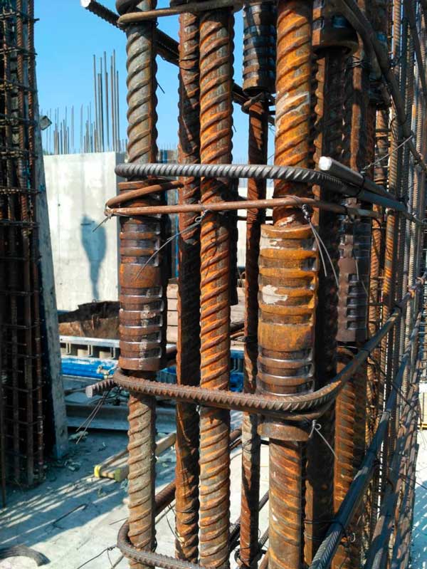 Подготовка арматуры. Стержни обрезают под прямым углом, очищают от грязи, ржавчины, масел и других загрязнений. Проверяют диаметр стержней — он должен соответствовать внутреннему диаметру муфты. Установка муфты. Концы арматурных стержней вставляют в муфту с двух сторон. Муфта должна быть расположена строго по оси стержней, чтобы избежать перекосов. Она должна покрывать оба конца стержней и находиться посредине соединения.